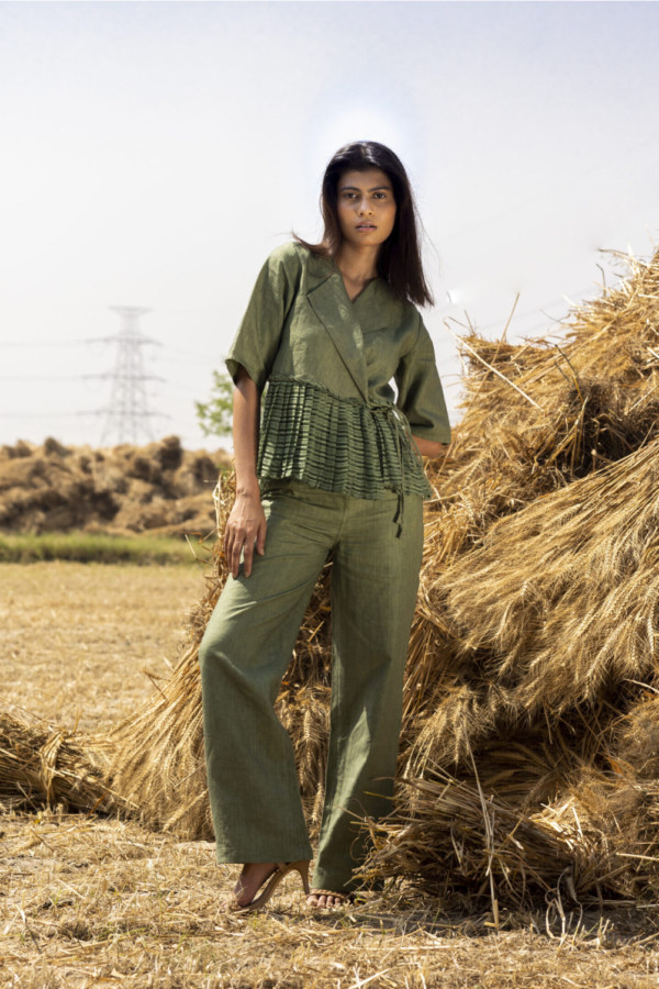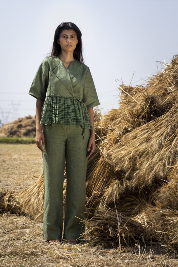 Tailored from the summer friendly, organic Hemp fabric, our Peplum Top is perfect for all day wear. The silk noil fabric in the pleats, adds to its perfection.