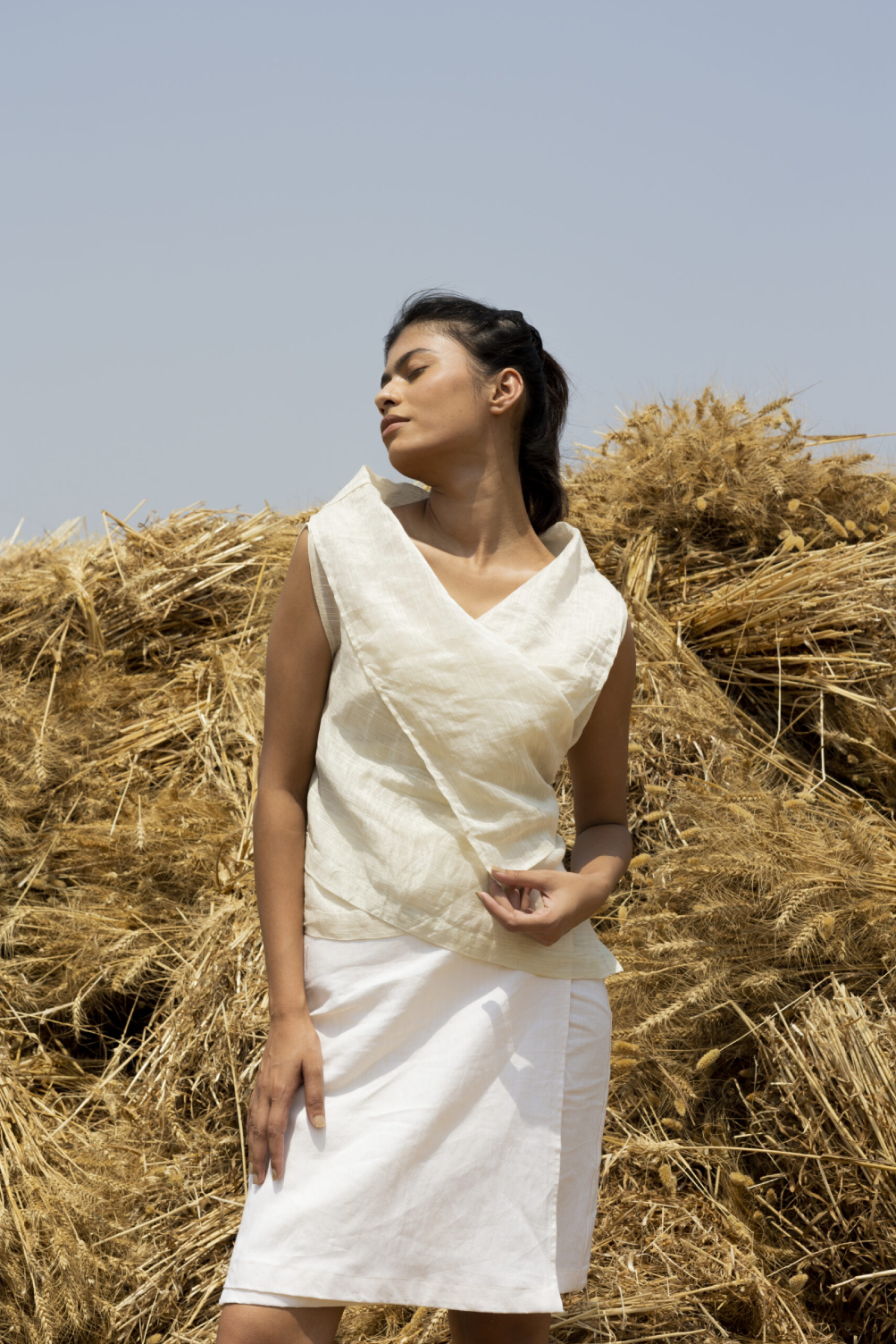 Made with silk tissue fabric, this timeless ,simple, versatile Wrap Dress is an essential for your conscious wardrobe. It comes with cotton slip underdress. It is a perfect ensemble for a date night. | EPIPHANY – SS ‘ 22 brings a collection of year round essentials for a sustainable wardrobe. Each garment in our collection is carefully designed to be the basic timeless piece for you to cherish.